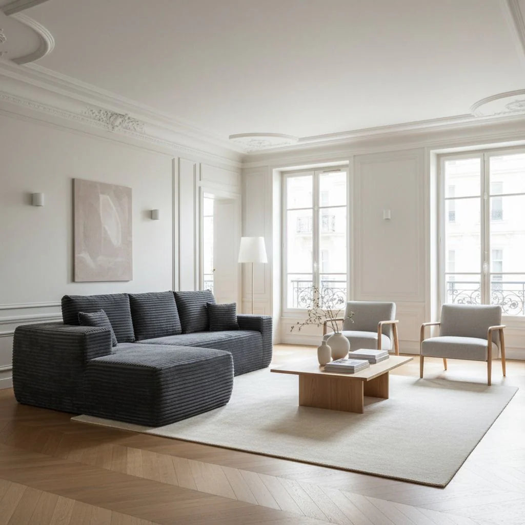 Les tissus, structures et mousses sont testés pour leur résilience, garantissant la même durabilité qu’un canapé livré monté. Vous bénéficiez du même confort, tout en profitant d’une livraison simplifiée.